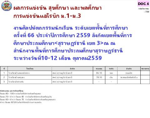 การแข่งขันแอโรบิก ชั้น ม.1-ม.3 งานศิลปหัตถกรรมนักเรียนครั้งที่ 66 ระดับเขตพื้นที่ฯ ได้รับเหรียญทองอันดับ 1