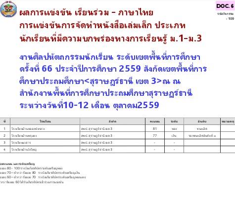 การแข่งขันการจัดทำหนังสือเล่มเล็กประเภทนักเรียนที่มีความบกพร่องทางการเรียนรู้ ชั้น ม.1-ม.3 งานศิลปหัตถกรรมนักเรียนครั้งที่ 66 ระดับเขตพื้นที่ฯ ได้รับเหรียญทองอันดับ 1